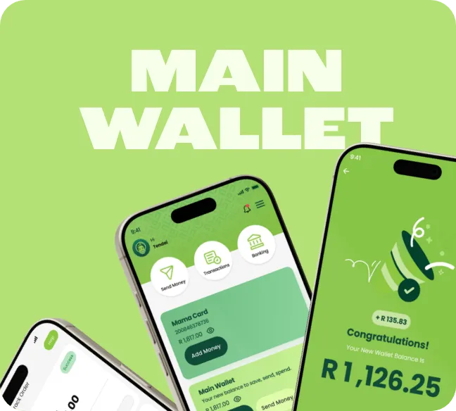 Add funds by EFT or FREE cash loads at Pick n Pay, move your money easily, buy Save in USD or do a cash send to get cash when you need it. Total control over your cash. Add however much you need, store it in your Main Wallet and send money home multiple times, whenever as you need to!